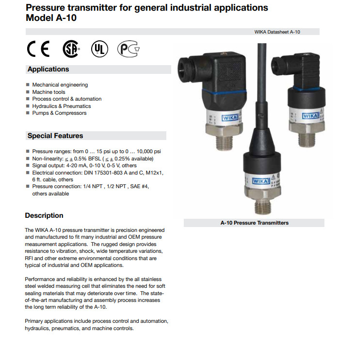 | Επισημαίνω | Α-10 μεταδότης πίεσης Γουίκα,μεταδότης πίεσης βιομηχανικού περιβάλλοντος |