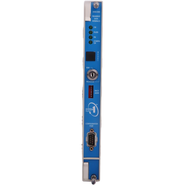 The 3500/22M Transient Data Interface (TDI) is the interface between the 3500 monitoring system and compatible software (System 1 Condition Monitoring and Diagnostic software and 3500 System Configuration software). The TDI combines the function of a 3500/20 Rack Interface Module (RIM) with the data collection capability of a communication processor such as TDXnet.