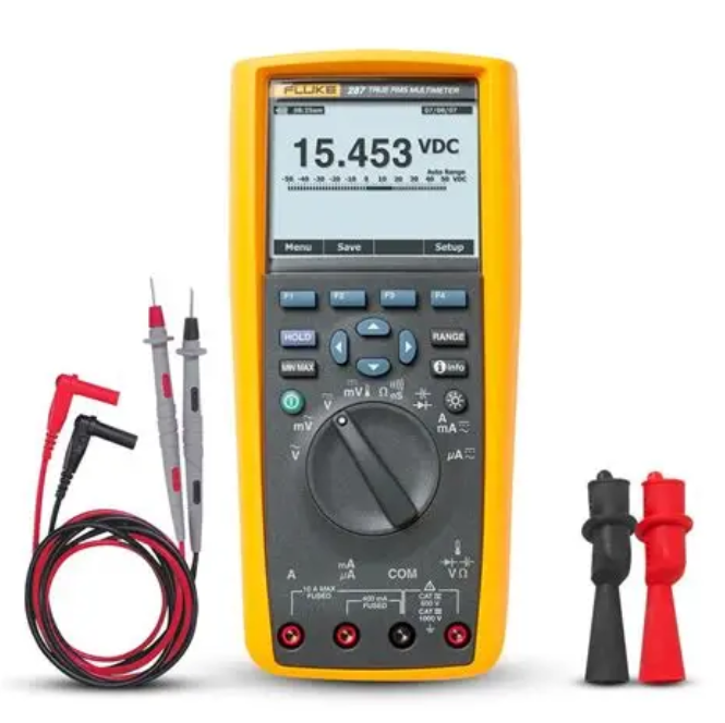 The Fluke 287 True RMS Electronic Record Multimeter with Trend Capture quickly records design performance and graphically displays what is happening. With its unique recording and graphing capabilities, users no longer need to download recorded readings to a PC to analyze trends. The Fluke 287 incorporates unprecedented precision and ease of use into handheld multimeters, greatly enhancing the user's problem-solving skills. It is the ultimate handheld measurement tool in demanding applications demanding high accuracy.
